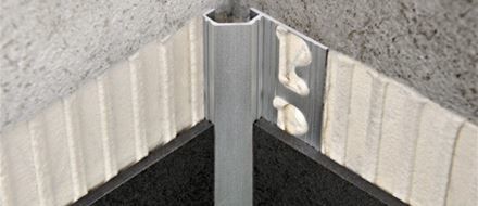 A profile for protecting the edges and corners of thin wall coverings. A square profile prevents chipping of the tile edges.